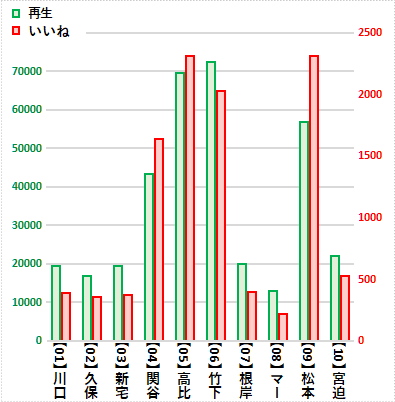 ちなみに、今回もトップは、再生数・いいね数ともにバランスよく支持を得た由菜ちゃんとなりました。